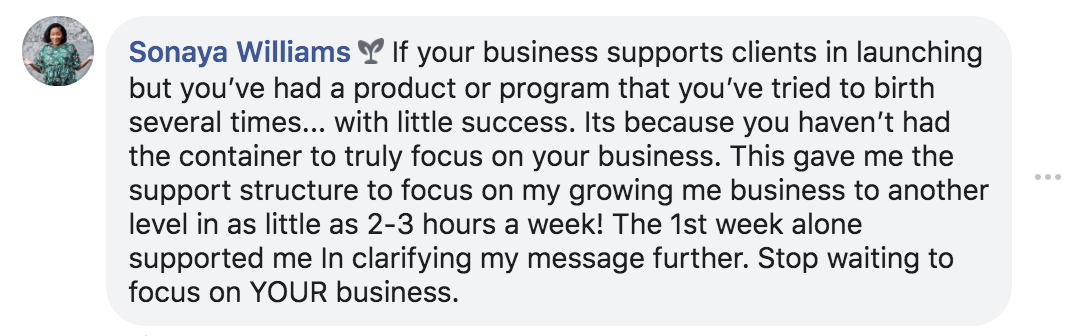 Yes you will be scared. Yes it will stretch you but this has been beyond worth it. It's been a game-changer when it comes to my business and my mindset. I now have a solid plan and method on how I (a) show up in my tribe and (b) launch new products and services. It's a plug and play, repeatable system that I can now implement time and time again. I feel in control and can finally work ON PURPOSE versus just halfway throwing stuff out there to see what sticks.
