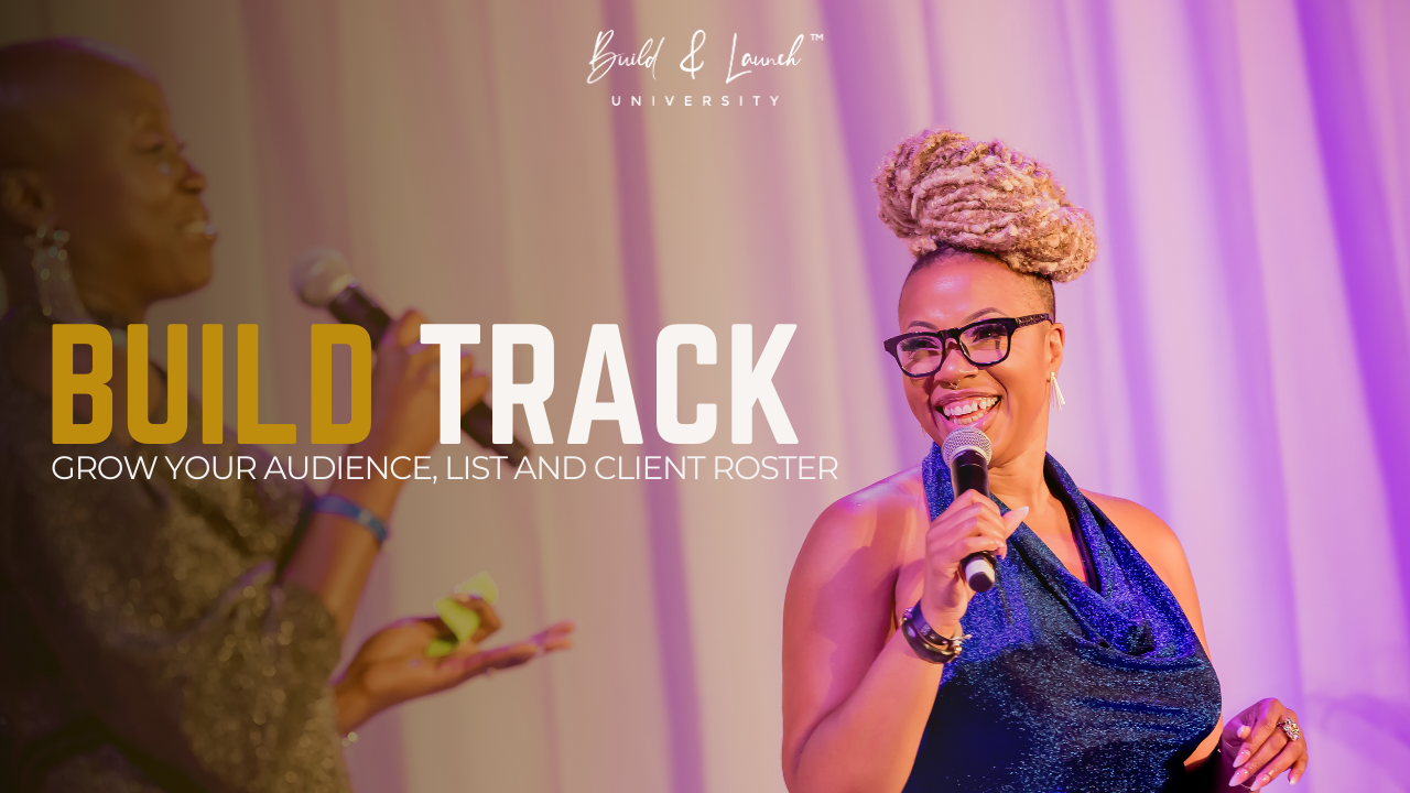 The Build Track has been thoughtfully crafted to assist you in cultivating your audience in alignment with your unique brand identity. These include strategies for growing your email list, creating impactful challenges, crafting compelling content, and mastering digital tools to build your audience with virtual (webinars.) and in-person events.